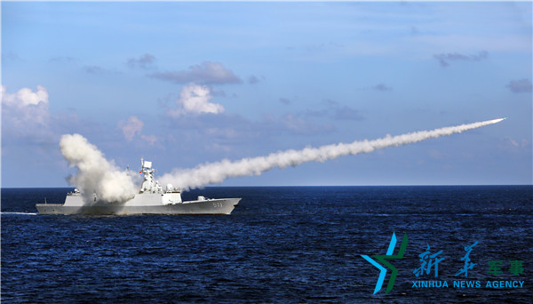 ??? 海軍在海南島至西沙附近海空域組織實(shí)兵實(shí)彈對(duì)抗演練,這是導(dǎo)彈護(hù)衛(wèi)艦運(yùn)城艦發(fā)射反艦導(dǎo)彈(7月8日攝)。新華社記者查春明攝