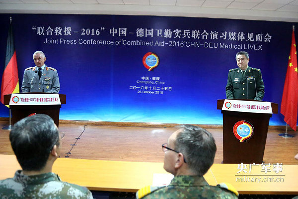 ????“聯(lián)合救援-2016”中國(guó)-德國(guó)衛(wèi)勤實(shí)兵聯(lián)合演習(xí)25號(hào)在重慶落幕,中德雙方參演部隊(duì)通過(guò)聯(lián)合指揮、聯(lián)合行動(dòng)、聯(lián)合保障,達(dá)到共同提高應(yīng)急醫(yī)學(xué)救援能力和協(xié)同合作能力的目的, 增進(jìn)了兩軍互信。