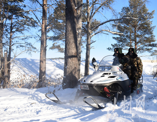 ????2016年12月28日,駐守在祖國最北端黑龍江省漠河縣北極村的武警邊防官兵在零下35℃的極寒天氣中,騎乘雪地摩托對界江一線進(jìn)行巡查,防止轄區(qū)群眾及外來游客誤越國境,發(fā)生涉外事件。進(jìn)入冬季,來自全國各地的游客紛紛來到北極村,找北、找冷、體驗極寒,因為天氣寒冷中俄界江——黑龍江已經(jīng)冰封,游客可以在界江之上體驗不一樣的北國風(fēng)情。(褚福超)