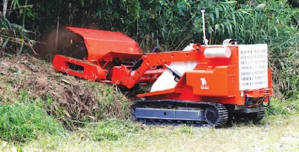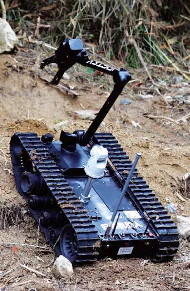 雷場清障車,是通過遙控操作的。具有在坡度小于40°的山地進(jìn)行清障排爆作業(yè)的功能。該車具有較強(qiáng)的爬坡能力,操作手可以在1000米范圍內(nèi)實(shí)施無線遙控控制,完成掃除淺層防步兵地雷、清除灌木叢和鏟運(yùn)樹木等任務(wù),以電錘擊爆地雷手雷等未爆炸物品,這期間即使產(chǎn)生爆破碎片或者沖擊波都不會(huì)對(duì)操作員構(gòu)成危險(xiǎn)。