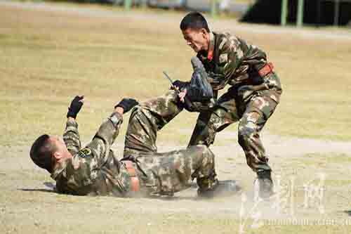 ????“進(jìn)可一招殺敵,退可一招制服。”一等功臣、反恐尖兵、軍事教員、四級(jí)警士長(zhǎng)李文介紹,此次展示的特種格斗控制術(shù)是該支隊(duì)在緝私、緝毒、反恐、維穩(wěn)等長(zhǎng)期戰(zhàn)斗中形成和發(fā)展起來(lái)的一項(xiàng)格斗控制技能,綜合運(yùn)用踢、摔、擒拿等技法,涵蓋重點(diǎn)部位打擊、徒手打擊、警械運(yùn)用等要領(lǐng),使官兵在訓(xùn)練中體驗(yàn)綜合格斗,在格斗中突破自我身體極限,達(dá)到強(qiáng)身健體、提高戰(zhàn)斗水平的目的。