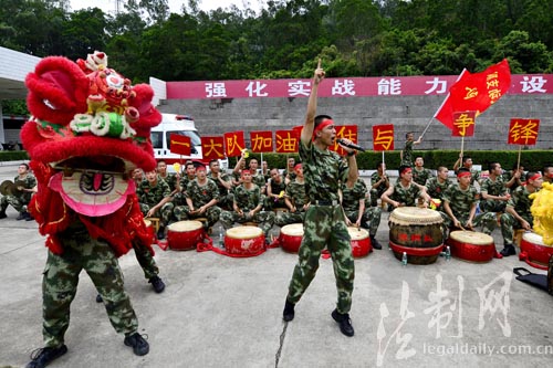 ????“一個人要喊出一個團的聲音,一個連要有一個軍的殺氣!”反恐大隊拉拉隊隊長、四級警士長王偉健將拉拉隊員的“終極目標”概括為:“氣吞萬里如虎!”。盤點拉拉隊,發(fā)現(xiàn)的是當代革命軍人朝氣蓬勃的無限生機。你以為拉拉隊就只是扯開脖子死命喊嗎?那都是上個世紀的事了。在現(xiàn)場,可以看到大喇叭喊話筒、橫幅標語舉大牌、敲鑼打鼓吹軍號,甚至連舞獅、軍樂演奏都來用上了,而且通常是比賽未起、戰(zhàn)鼓先擂,隊員有休息、拉拉隊無所息,場上激情90分鐘、場下比拼5400秒,各種打氣喝彩的詞更是層出不窮、推陳出新,一支隊伍的精氣神可見一斑。(廖鍵)