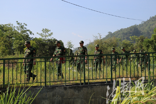 ????6月3日,云南邊防總隊天保邊防檢查站與越南清水國際口岸邊防屯在中越陸地邊界地段舉行徒步聯(lián)合巡邏。