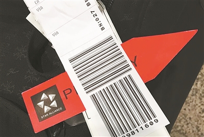 托運(yùn)行李上的優(yōu)先標(biāo)簽。記者 鄒菲 攝