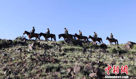 6月15日,阿勒泰邊防支隊吉木乃大隊官兵與護邊員赴邊境區(qū)域護邊巡查?!⊥跤巡āz