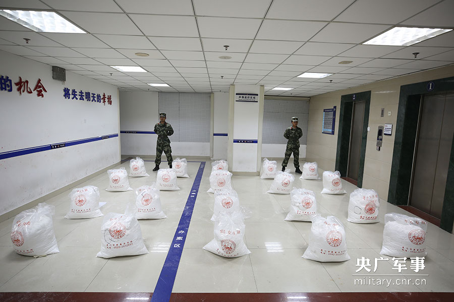 廈門邊防支隊官兵看守收繳的毒品