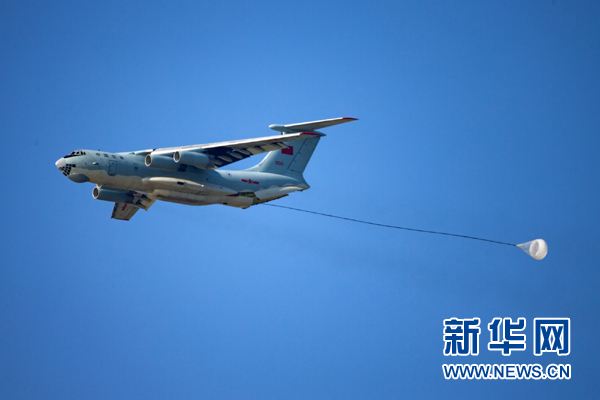 8月4日,中國空軍伊爾-76戰(zhàn)機在“航空飛鏢”靶場開放日進(jìn)行重裝空投。新華社發(fā)(楊盼 攝)