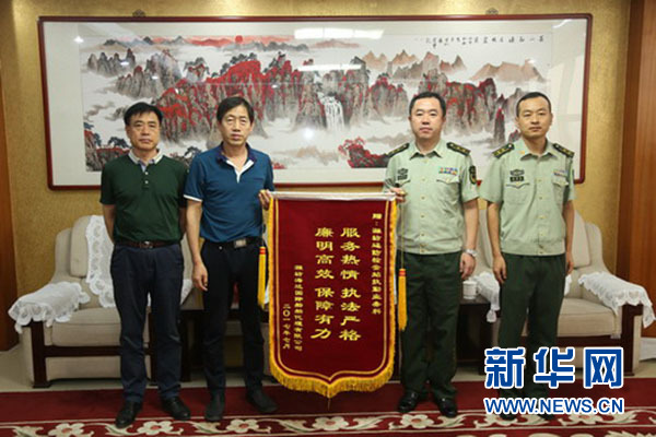 駐地企業(yè)向?yàn)H坊邊檢站贈(zèng)送錦旗。