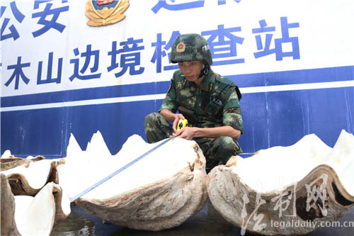 防城港邊防查獲國家一級保護(hù)動(dòng)物硨磲標(biāo)本3只 總重218公斤
