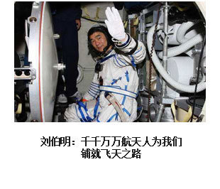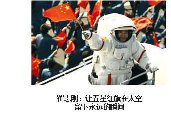 ??? 漫步太空、紅旗永駐。2008年9月27日16時(shí)43分,浩渺太空,敞懷相迎,我在戰(zhàn)友伯明、海鵬的協(xié)助和支持下,打開軌道艙艙門,邁出了中國人在茫茫太空中的第一步。在19分35秒的艙外活動(dòng)中,我隨飛船一起飛過了9165公里,成為中國“飛得最高、走得最快”的人。然而,成功并不代表成熟,一切仍要從零開始。后續(xù)的空間站任務(wù)、登陸月球……路還很長,挑戰(zhàn)還很多,需要付出和努力的也還很多。對于我來說,沒有停歇的腳步,只有奮進(jìn)的號角。