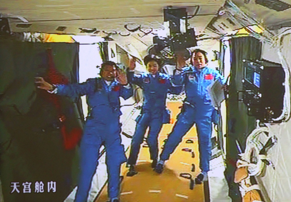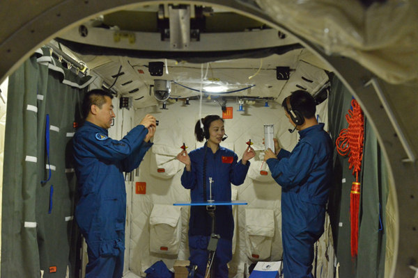????2013年6月26日8時07分,聶海勝、張曉光、王亞平圓滿完成我國載人航天首次應(yīng)用性飛行。王亞平站在“最高講臺”,一堂40分鐘的太空科學(xué)課,在千萬青少年心底播下科學(xué)與夢想的種子;