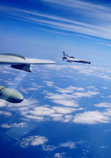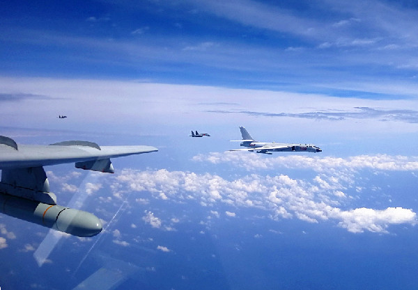?。丛拢保溉找詠?,空軍出動(dòng)轟-6K、蘇-30、殲-11和偵察機(jī)、預(yù)警機(jī)等多型多架戰(zhàn)機(jī),開展了海上方向?qū)崙?zhàn)化軍事訓(xùn)練。轟-6K等戰(zhàn)機(jī)實(shí)施了“繞島巡航”訓(xùn)練課題,提升了機(jī)動(dòng)能力,檢驗(yàn)了實(shí)戰(zhàn)能力。