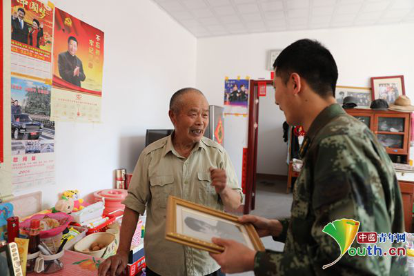 ????孟曉暉的爺爺孟慶欣也曾經(jīng)是一名解放軍戰(zhàn)士,并榮獲過獨立獎?wù)?。每?dāng)說起自己的從軍經(jīng)歷時,這位年過八旬的老人都十分振奮,談到繼承了“紅色基因”的兒孫時,孟慶欣老人的驕傲與自豪更是溢于言表。他說,自己經(jīng)常把當(dāng)年參軍的故事講給子孫聽,曉暉就是聽著爺爺?shù)墓适麻L大的,從小就說自己長大后也要當(dāng)兵。在唱起這首凝聚了他熱血青春與報國壯志的軍歌之前,老人嚴(yán)肅地說道:“我要換上一身整潔的軍裝!”