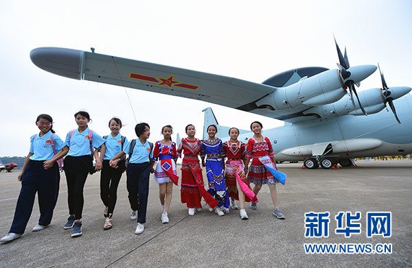 藍(lán)天春蕾女童在航展現(xiàn)場參觀(11月10日攝)。新華社發(fā)(陳藝 攝)