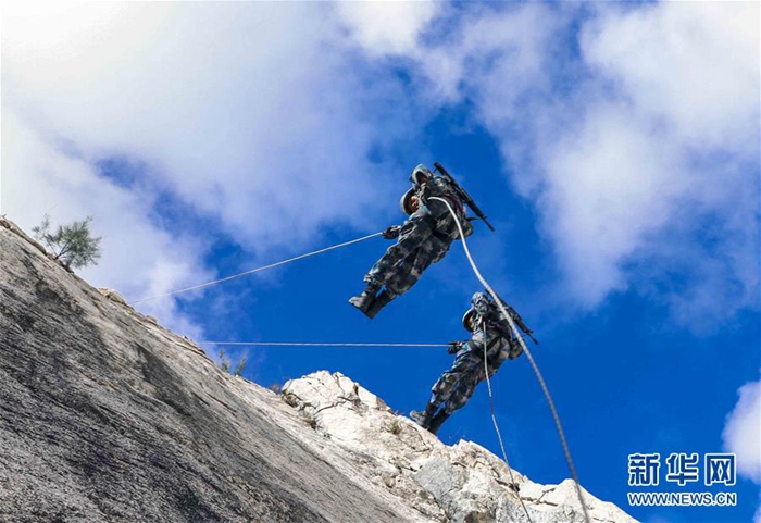 海軍陸戰(zhàn)隊某旅偵察營在三亞某地進(jìn)行崖壁滑降訓(xùn)練(11月20日攝)。新華社發(fā)(范旭東 攝)