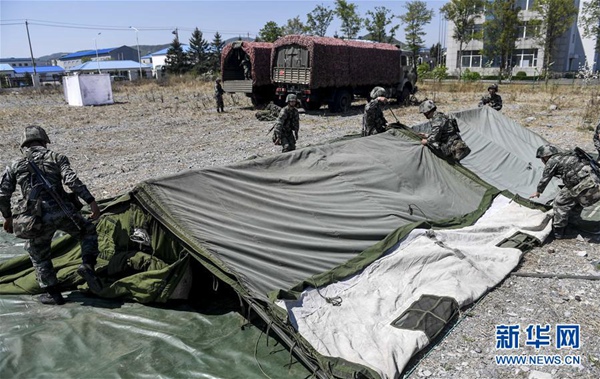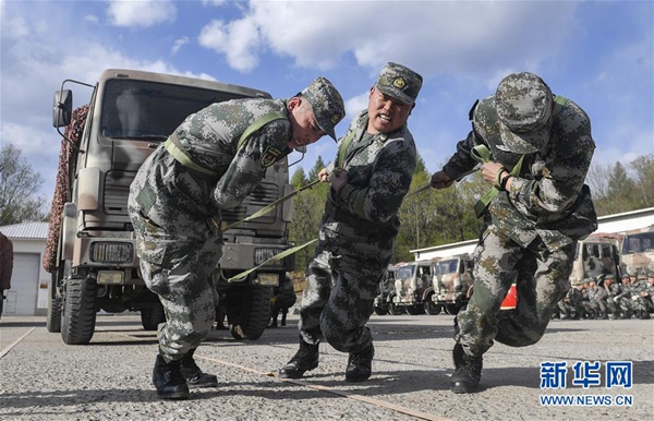 5月7日,沈陽(yáng)聯(lián)勤保障中心某汽車運(yùn)輸旅一營(yíng)戰(zhàn)士進(jìn)行戰(zhàn)備拉動(dòng)演練。新華社記者 許暢 攝