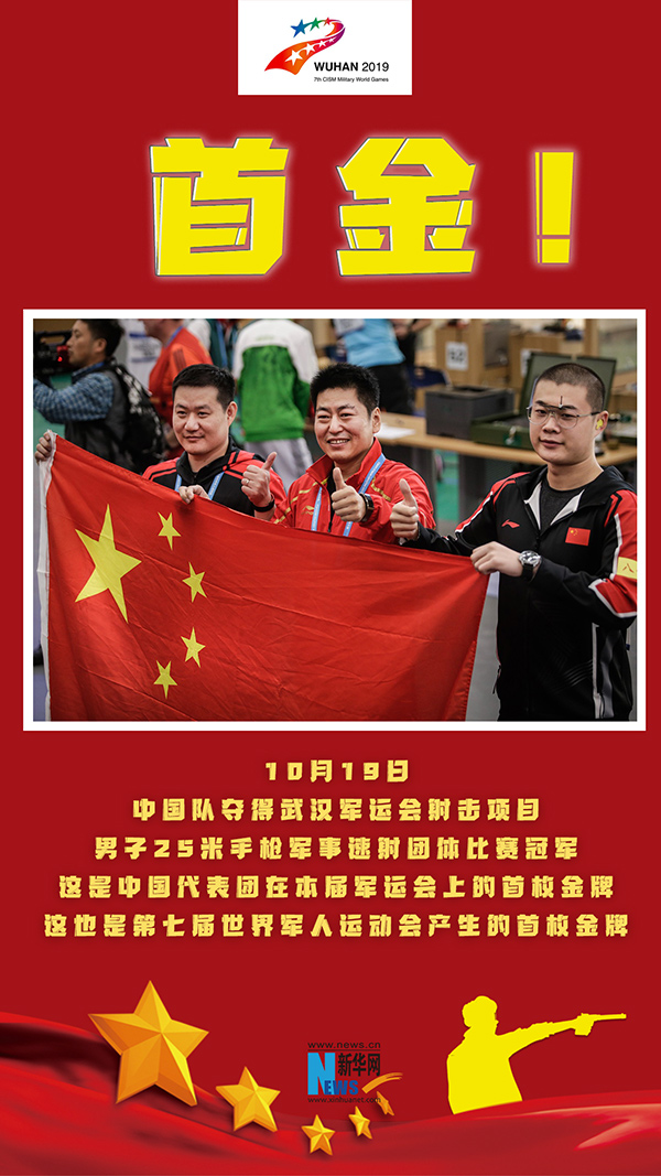 新華社武漢10月19日電 題:打響第一槍 射中第一金——中國隊勇奪第七屆世界軍人運動會首金側(cè)記