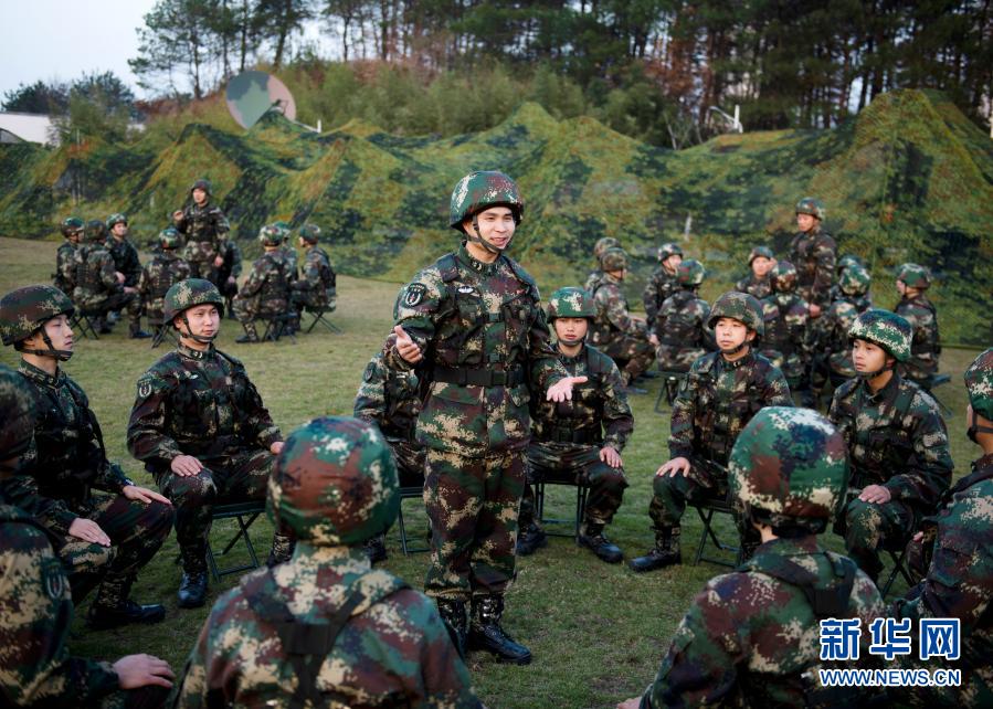 演訓(xùn)間隙,俞細文在野外訓(xùn)練場組織理論宣講(12月11日攝)。新華社發(fā)(劉明松 攝)