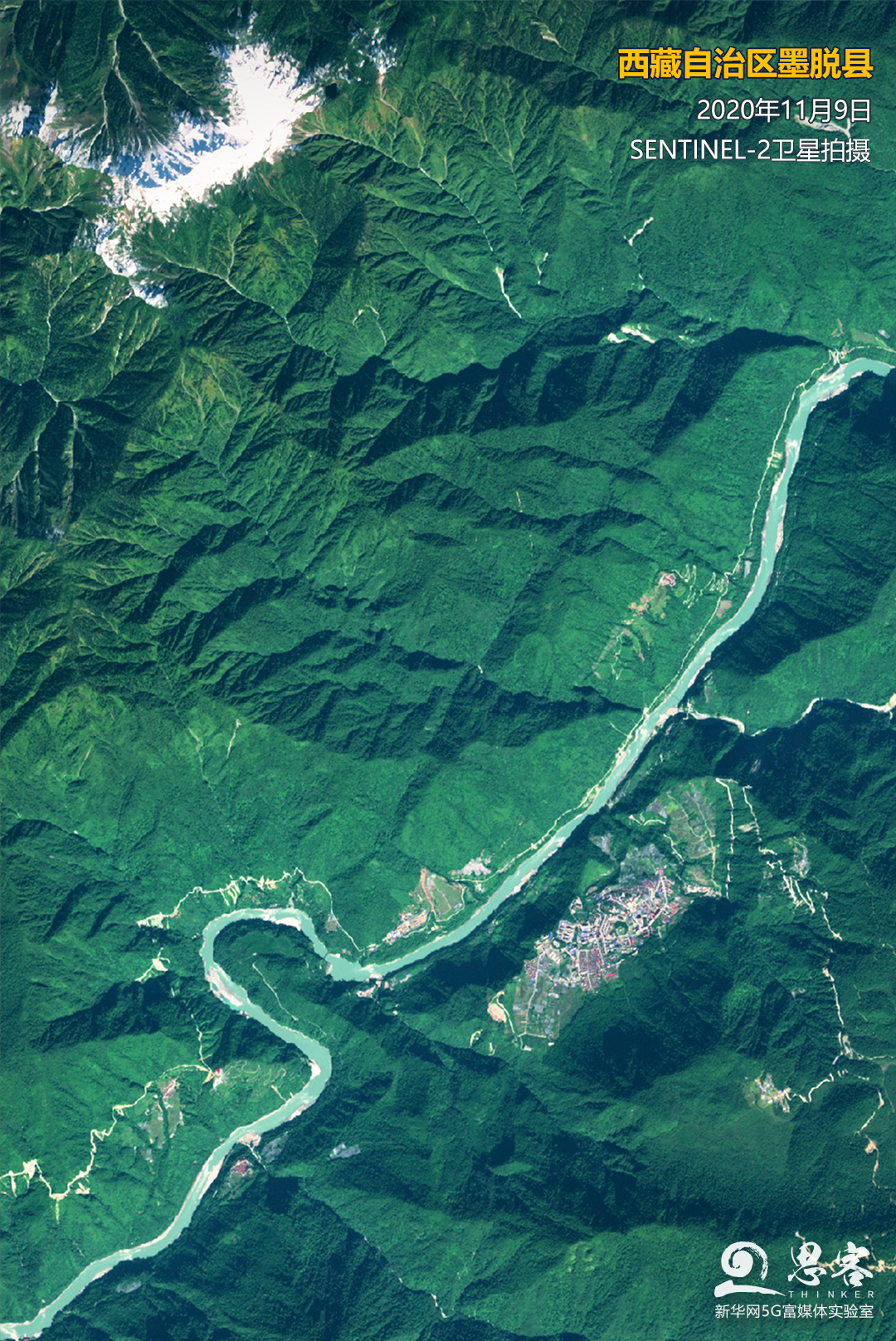 ▲鑲嵌在雅魯藏布江峽谷深處的“秘境”墨脫。衛(wèi)星數(shù)據(jù)來(lái)源:SENTINEL-2
