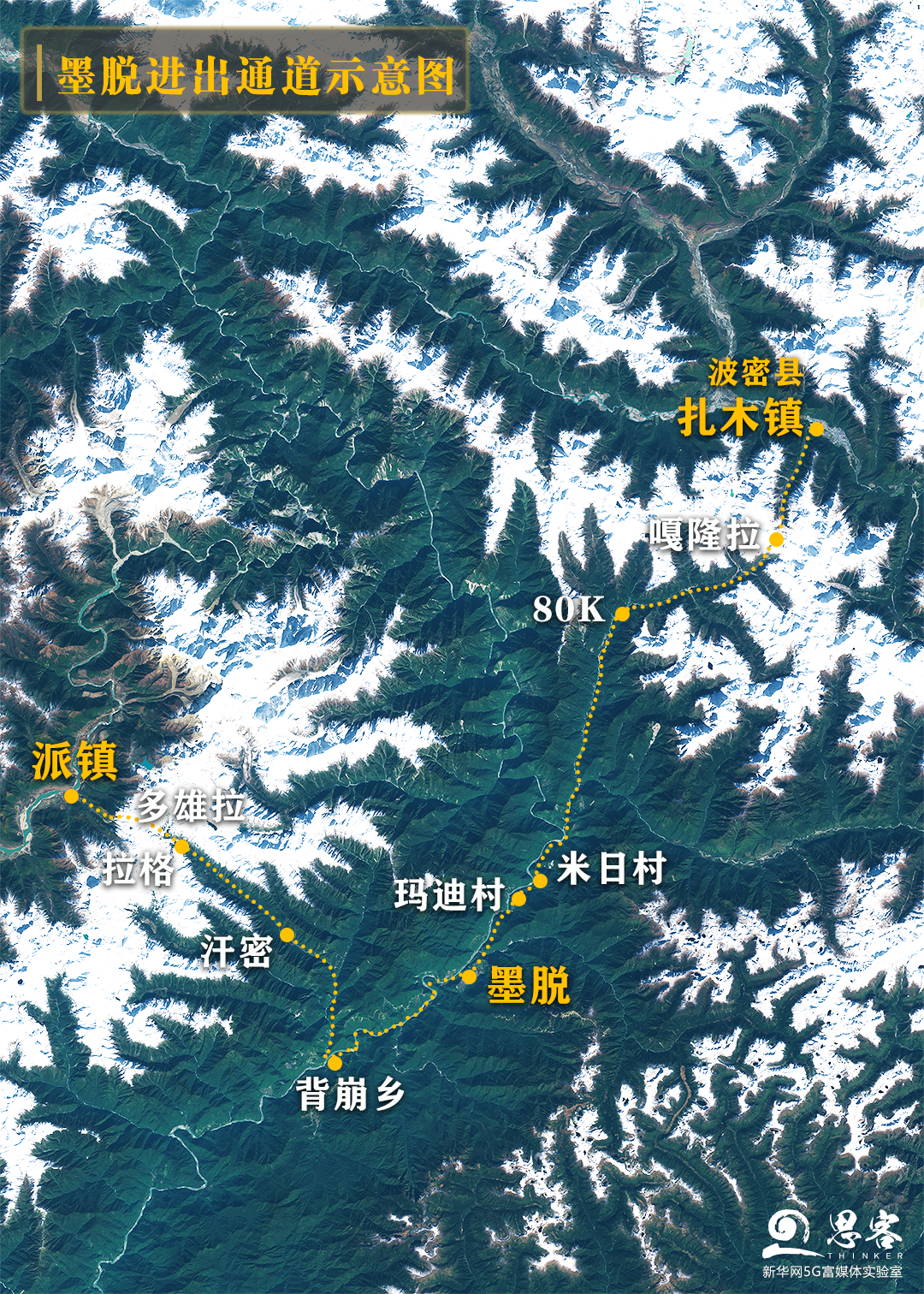 ▲進(jìn)出墨脫的兩條通道,修通公路前,沿途需4-5天。衛(wèi)星數(shù)據(jù)來(lái)源:SENTINEL-2