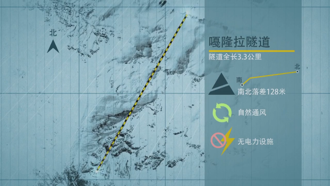 ▲嘎隆拉隧道南北高差達(dá)128米,相當(dāng)于40層樓的高度。