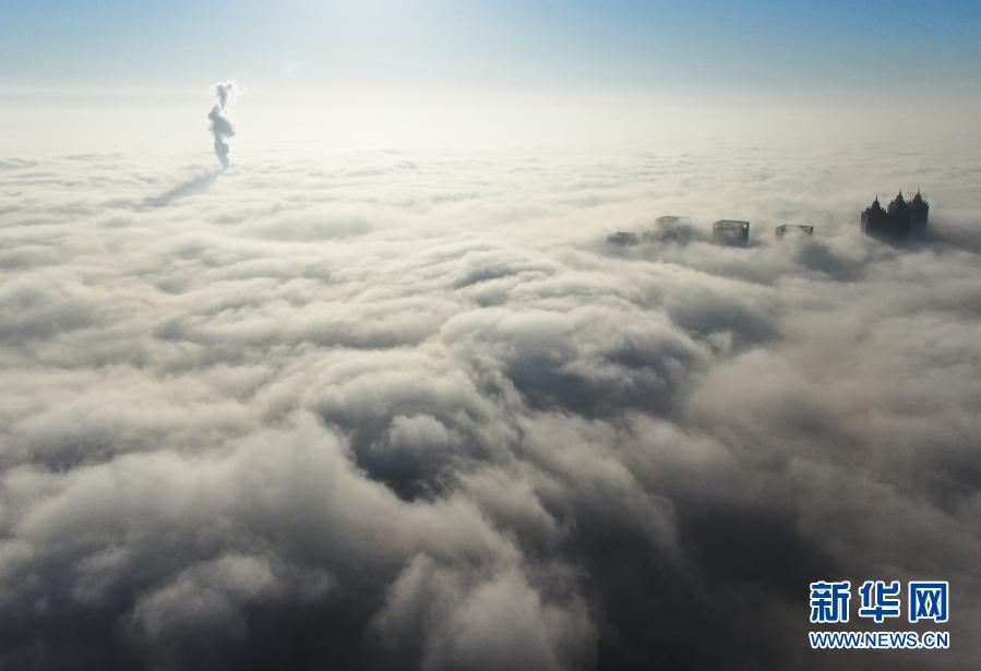 這是1月26日在沈陽市渾南區(qū)拍攝的市內(nèi)霧景(無人機照片)。新華社記者 楊青 攝