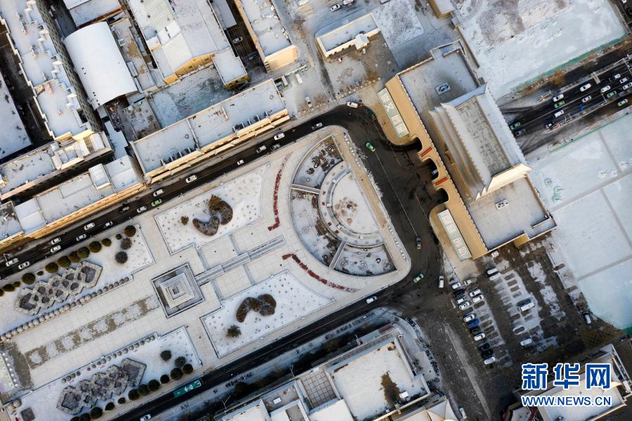 3月1日拍攝的雪后甘肅省武威市南城門廣場(chǎng)(無(wú)人機(jī)照片)。新華社發(fā)(姜愛(ài)平 攝)