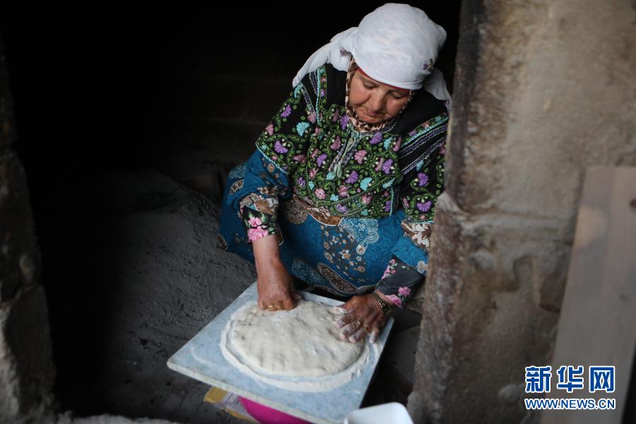 3月17日,70歲的卡茲蘭·阿布·卡巴什在約旦河西岸城市希伯倫附近的一個村莊制作“塔本”烤餅。