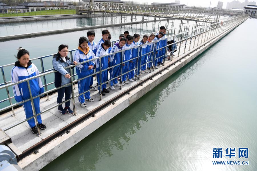 3月21日,水廠工作人員向?qū)W生介紹自來水生產(chǎn)流程。