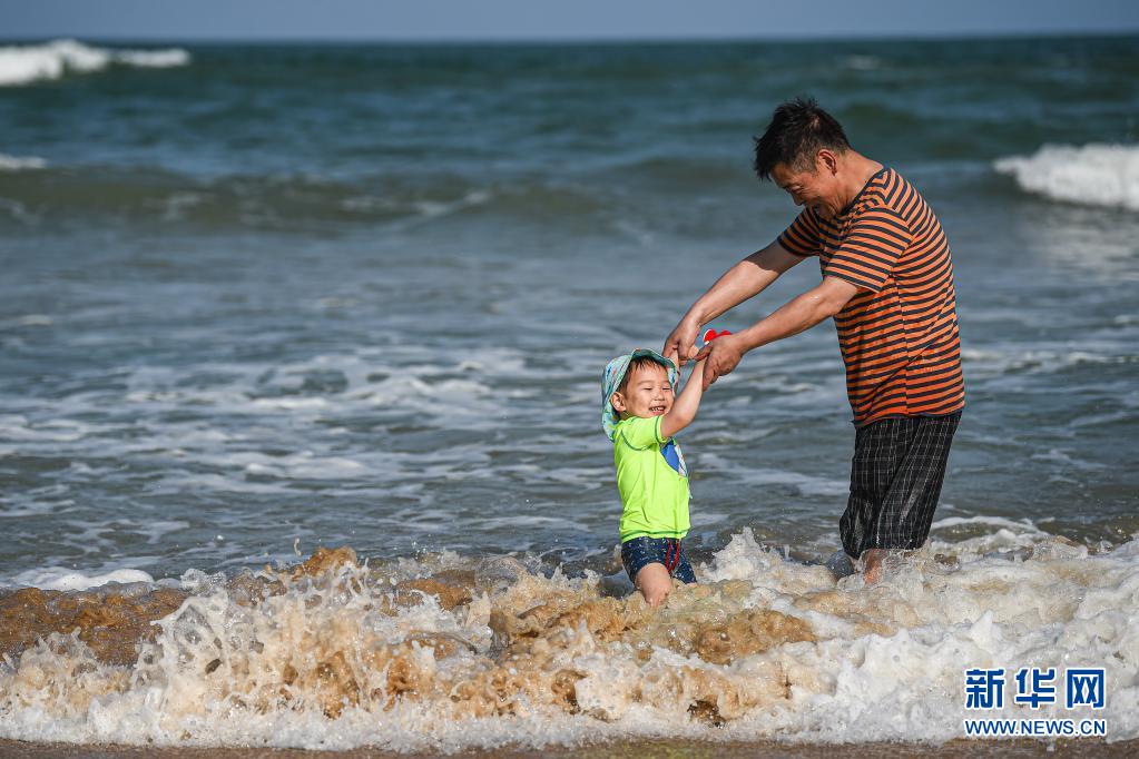 4月8日,游客在海南博鰲鎮(zhèn)海灘游玩。