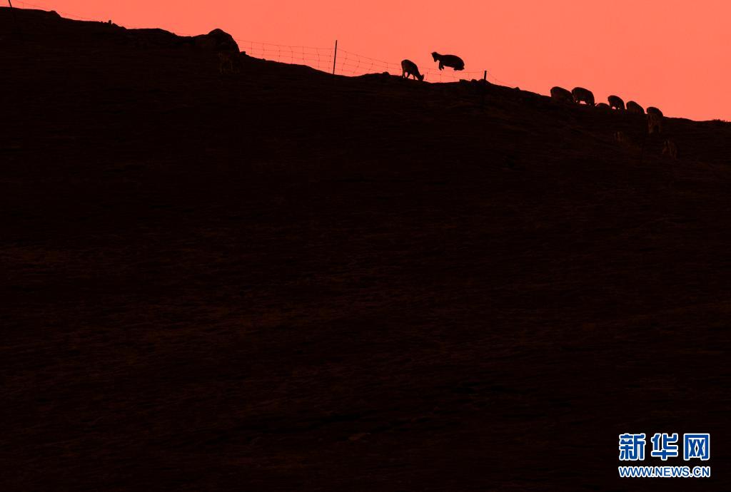 4月22日黃昏時(shí)分,在位于青海省海北藏族自治州的祁連山國家公園油葫蘆保護(hù)分區(qū),一頭巖羊高高躍起跨越障礙。