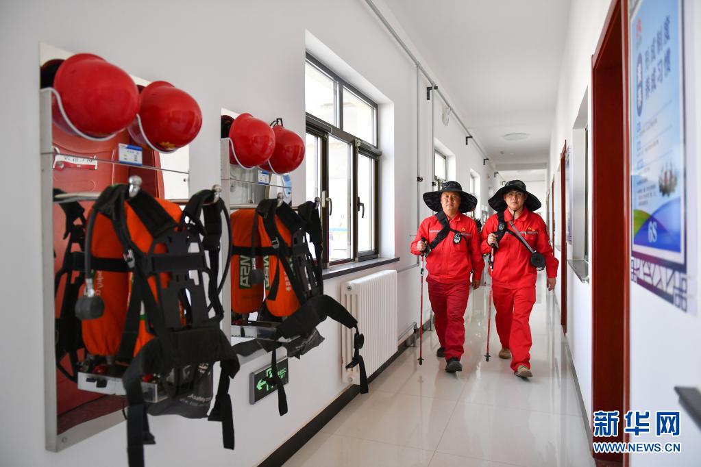 4月28日,巡線隊(duì)員侯勵(lì)峰、曹碩(右)從住地出發(fā)準(zhǔn)備開(kāi)始巡線。新華社記者 張博文 攝