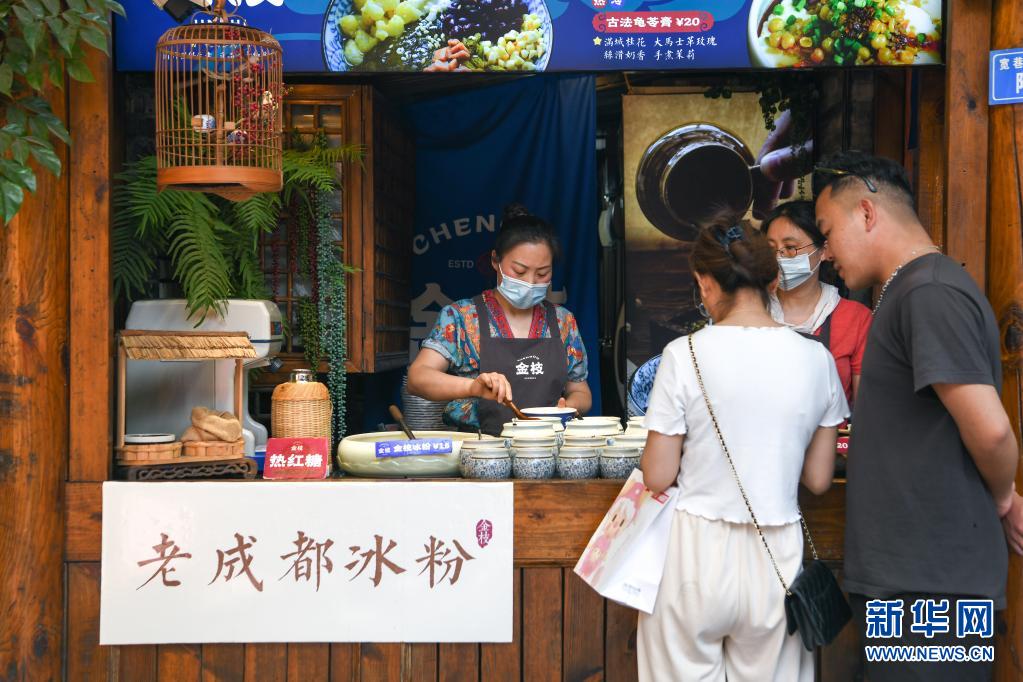 5月1日,游客在四川省成都市寬窄巷子景區(qū)購(gòu)買飲品。