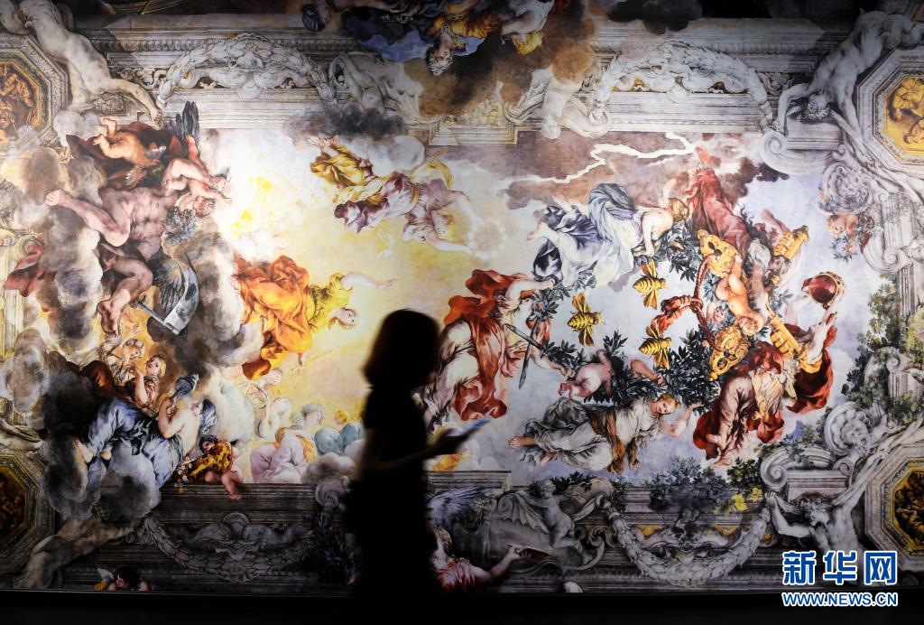 5月3日,觀眾走過展出的彼得羅·達(dá)·科爾托納壁畫作品《神意的勝利》復(fù)制品。