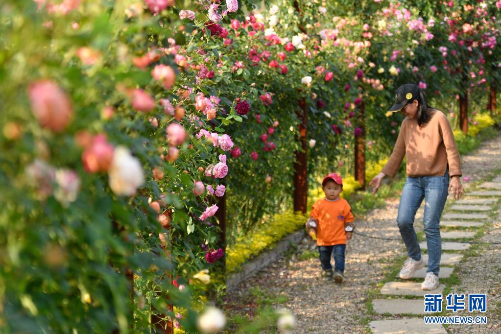 5月2日,游客在浙江湖州吳興區(qū)埭溪鎮(zhèn)莫家柵村四季玫瑰莊園內游玩。新華社記者 黃宗治 攝