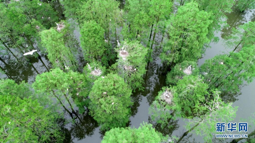 位于安徽省滁州市來安縣雷官鎮(zhèn)的池杉湖國家濕地公園經(jīng)過多年的生態(tài)修復(fù),形成分布數(shù)萬株池杉樹、具有獨特觀賞價值的“水上森林”濕地景觀,成為眾多鳥類生活、棲息的“天堂”。