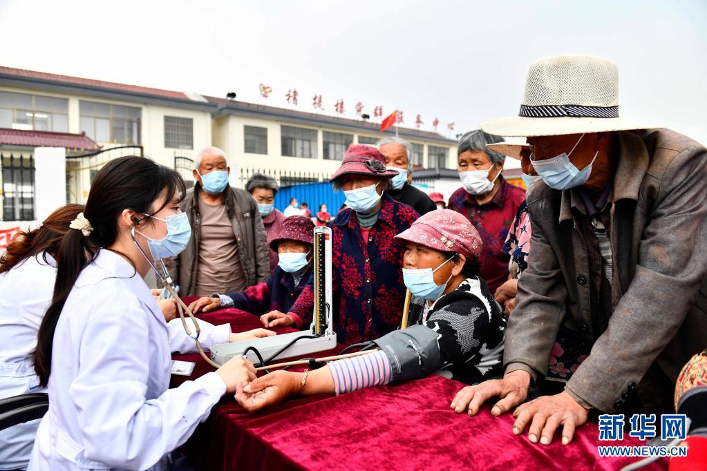 5月21日,在棗莊市臺兒莊區(qū)澗頭集鎮(zhèn)褚提樓村,“學(xué)黨史惠民”醫(yī)療小分隊(duì)為群眾開展送醫(yī)、送藥服務(wù)。