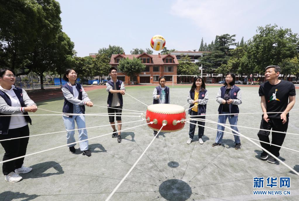 5月25日,江蘇省蘇州市第五中學(xué)的高三學(xué)生在玩“同心鼓”游戲。