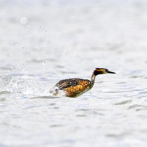 6月14日在拉魯濕地拍攝的兩只鳳頭??和一只小??(中)。夏日里,鳳頭??和小??在西藏拉薩拉魯濕地國(guó)家級(jí)自然保護(hù)區(qū)水面上嬉戲。新華社記者 張汝鋒 攝