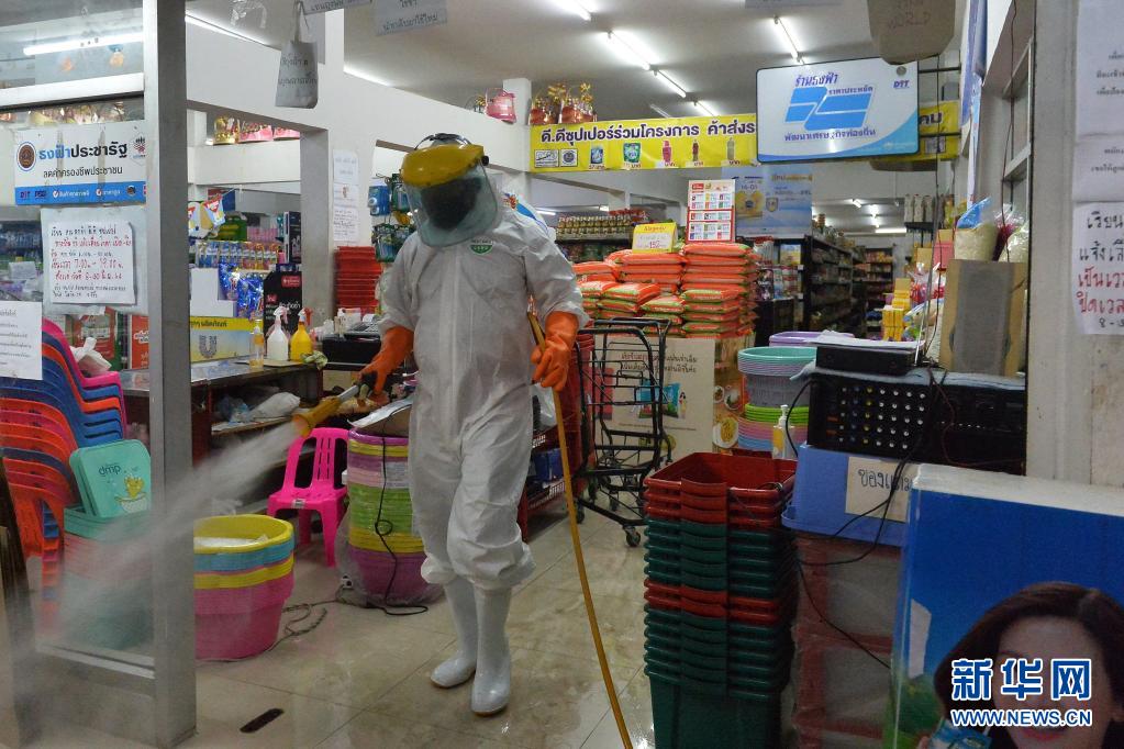 6月21日,工作人員在泰國首都曼谷一處生鮮市場進行消毒。