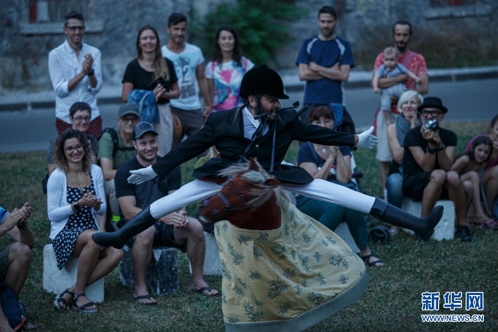 6月30日傍晚,藝術工作者在斯洛文尼亞首都盧布爾雅那進行街頭戲劇節(jié)表演。
