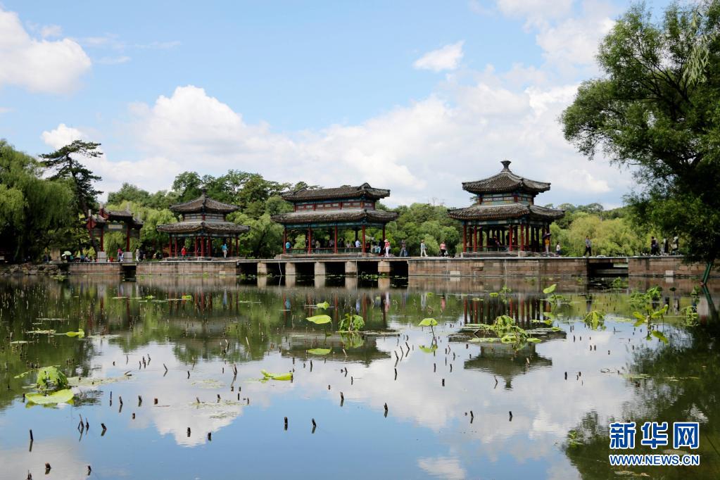 當日,連續(xù)降雨過后的河北省承德市天氣晴朗,世界文化遺產(chǎn)承德避暑山莊在藍天白云映襯下景美如畫。