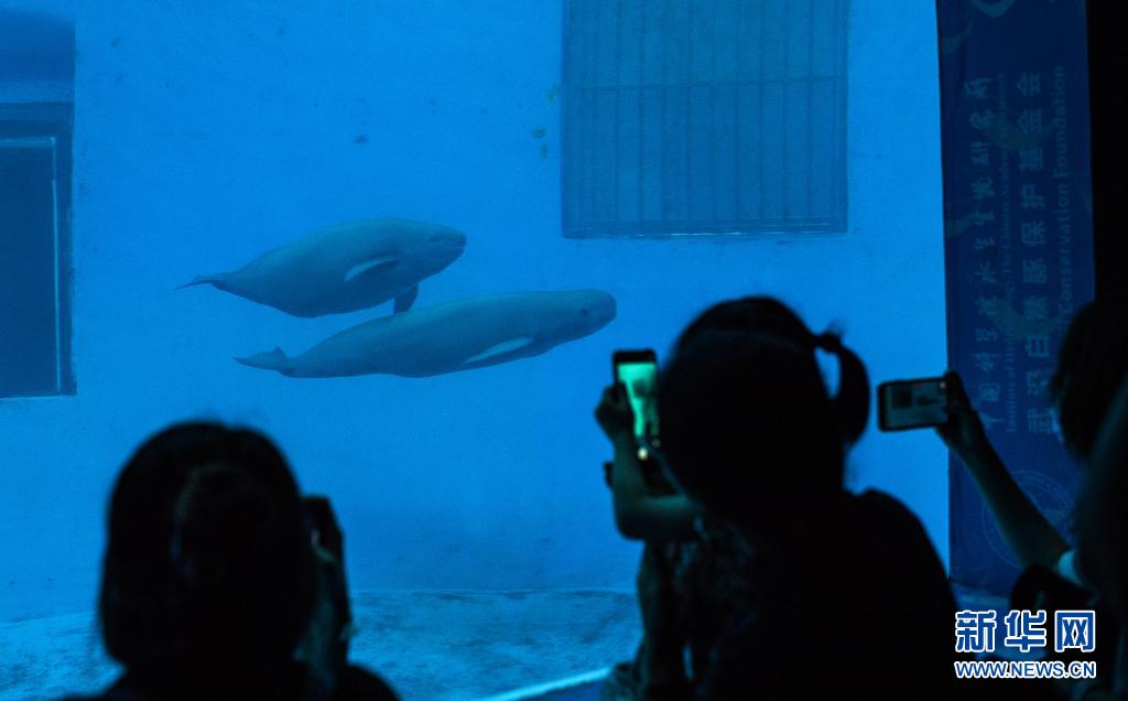 7月5日,小朋友在中國(guó)科學(xué)院水生生物研究所白鱀豚館舉行的“愛豚月”系列科普活動(dòng)上觀看這對(duì)長(zhǎng)江江豚母子。新華社記者肖藝九攝