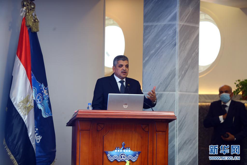 7月7日,埃及蘇伊士運(yùn)河管理局主席烏薩馬·拉比耶在伊斯梅利亞省召開新聞發(fā)布會(huì)。