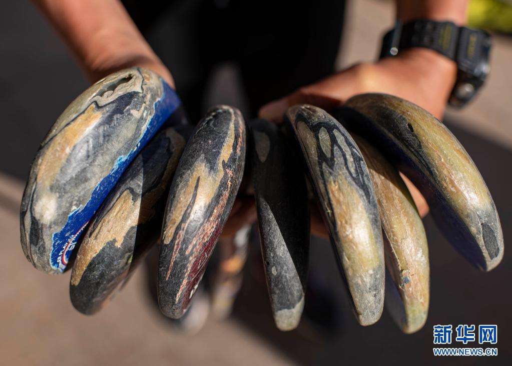 訓(xùn)練結(jié)束后,教練杜寶柱在收納小隊員們訓(xùn)練時使用的球棍(6月12日攝)。