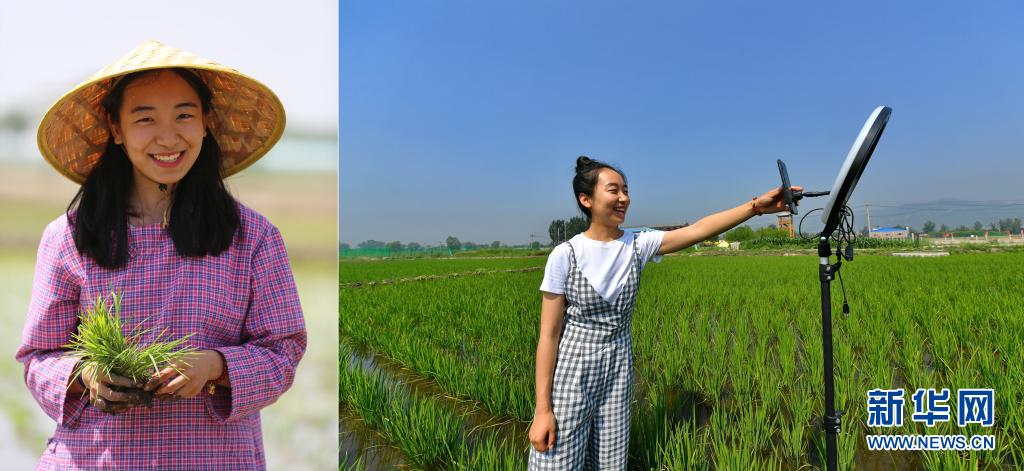 拼版照片:左圖為程玉嬌在太原市晉源區(qū)三家村水稻田里;右圖為程玉嬌在水稻田里進行直播(7月9日攝)。今年24歲的程玉嬌2019年留學(xué)回國后,選擇了返鄉(xiāng)創(chuàng)業(yè)發(fā)展稻魚菜綜合種養(yǎng)農(nóng)業(yè)。晉源區(qū)三家村出產(chǎn)的大米遠近聞名,程玉嬌在社交平臺上開通了雙語直播,在科普水稻知識的同時拓展銷售渠道,不僅生意做得風(fēng)風(fēng)火火,自己也變成了小有名氣的“網(wǎng)紅”。