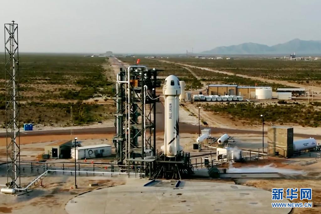 這張美國(guó)藍(lán)色起源公司7月20日發(fā)布的視頻截圖顯示“新謝潑德”飛行器在美國(guó)得克薩斯州西部一處發(fā)射場(chǎng)準(zhǔn)備升空。