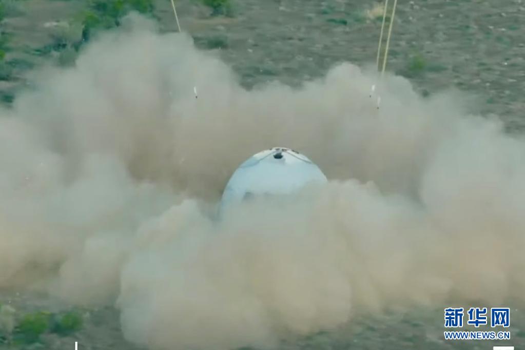 這張美國藍色起源公司7月20日發(fā)布的視頻截圖顯示“新謝潑德”飛行器在美國得克薩斯州西部著陸。