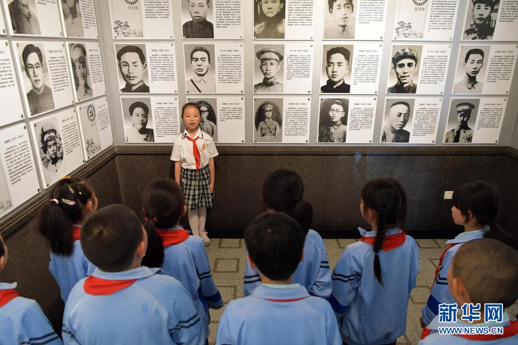 在井岡山革命烈士陵園,“小紅軍宣講團(tuán)”的成員周煜菡給前來參觀研學(xué)的學(xué)生們進(jìn)行義務(wù)講解(5月12日攝)。新華社記者 彭昭之 攝