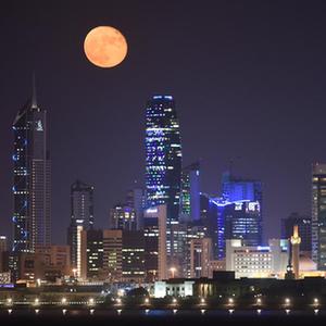 這是7月25日晚在科威特首都科威特城拍攝的月亮。